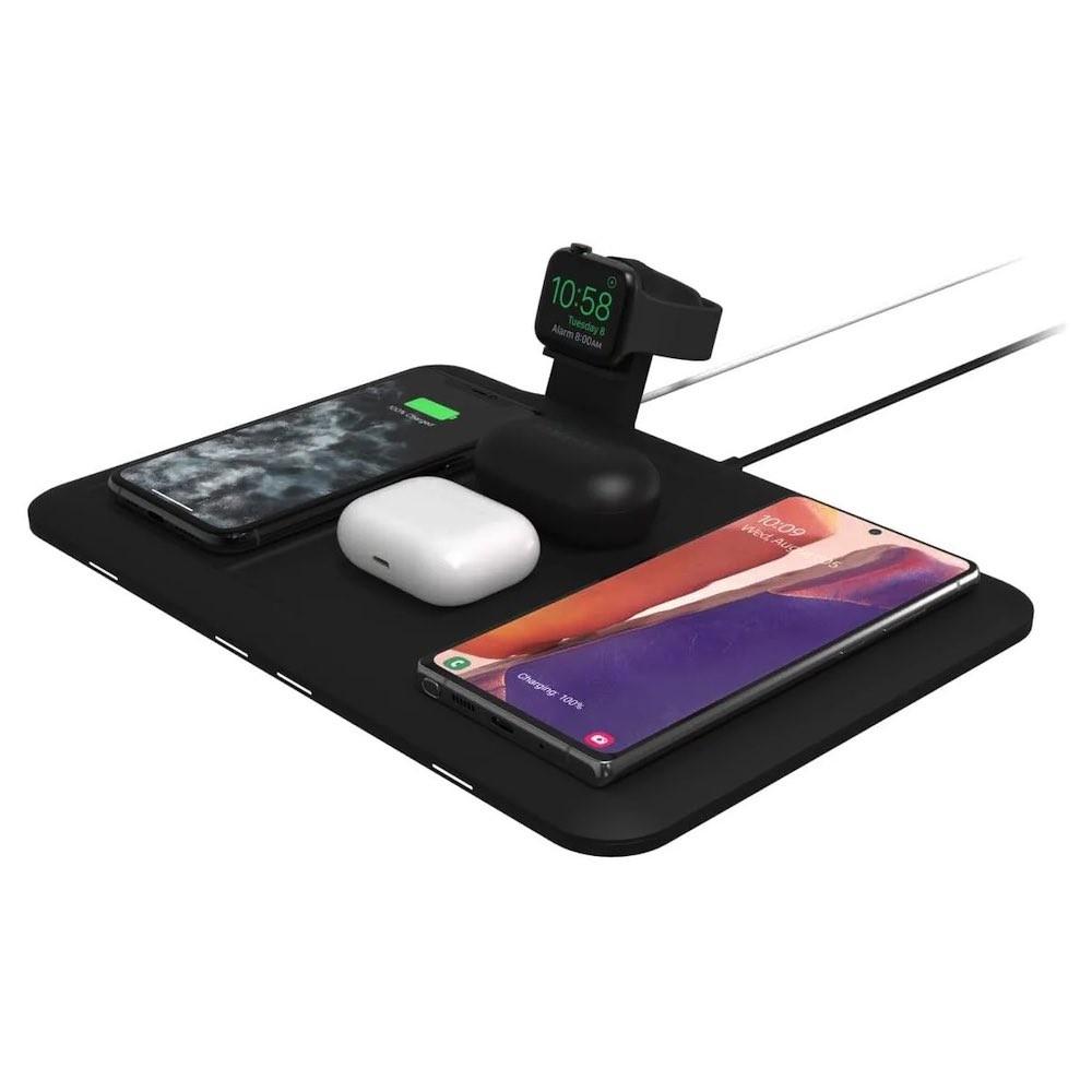 Четворна поставка (пад) за безжично зареждане на мобилни устройства, Apple Airpods и Apple Watch - Mophie 4-in-1 Wireless Charging Mat (черен)