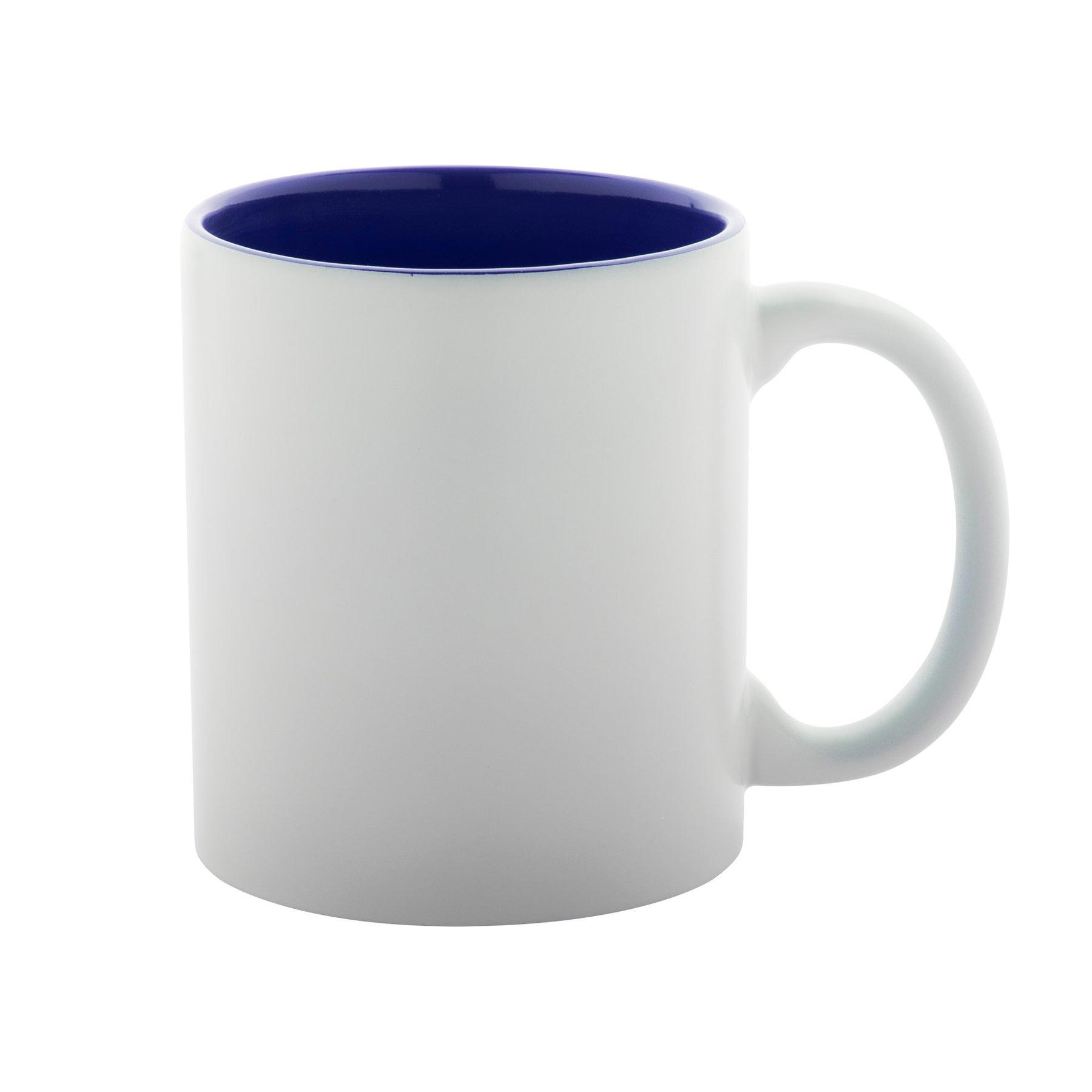 • Бяла керамична чаша с цветна вътрешност.
