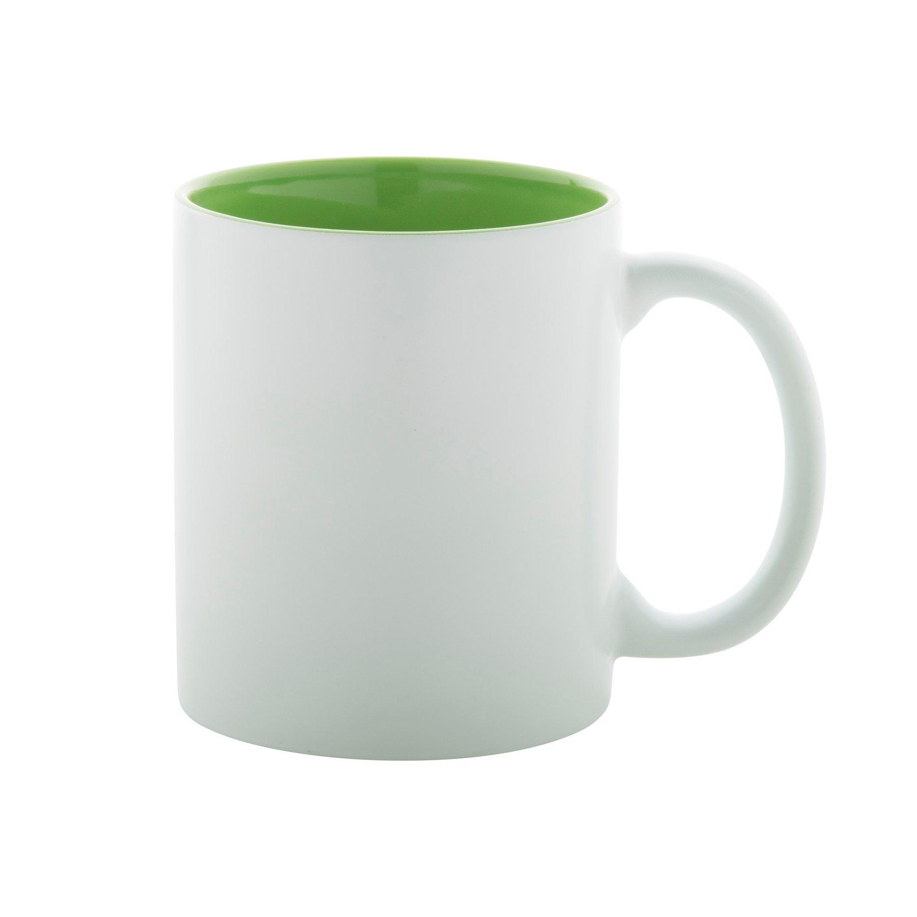 • Бяла керамична чаша с цветна вътрешност.