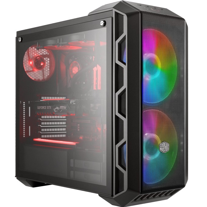 Two front panels, two 200mm ARGB fans, and a handle to grip onto when the adrenaline kicks in. The MasterCase H500 is established as the go-to ATX PC case for high performance airflow. Now, with 200mm ARGB fans, its legacy is upgraded with premium lighting.Each choice of front panels decide whether the build will excel at ruthless airflow performance or head-turning aesthetics. Of course, the mesh is the ideal choice for providing the pre-installed fans with high volumes of fresh air. The transparent panel, on the other hand, parades those fans in crystal clear view.With the included accessories, substantial ventilation, and iconic H-Series design elements, the MasterCase H500 retains all of the advantages of the original while adding ARGB fans for good measure.