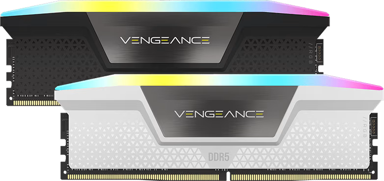 Maximum bandwidth, tight response times Optimized for maximum bandwidth and tight response times on the latest Intel DDR5 compatible motherboards. | Solid aluminum heatspreader Conducts heat away from your memory quickly, with refined VENGEANCE dual-tone styling to fit the look of modern systems. |