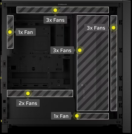 | Fan Support - Front | 3x 120mm, 2x 140mm, 2x 200mm |