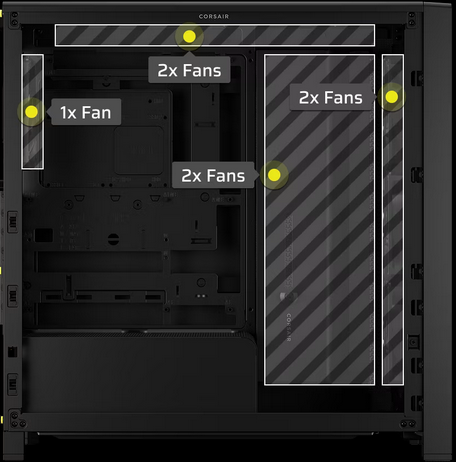 | Fan Support - Side | 3x 120mm; 2x 140mm |