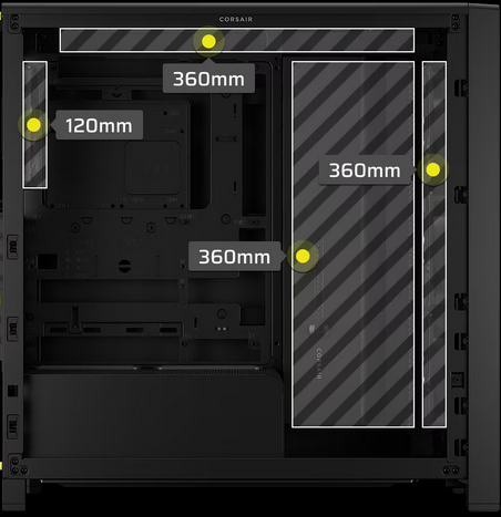 | Radiator Support - Side | 360mm, 280mm, 240mm |
