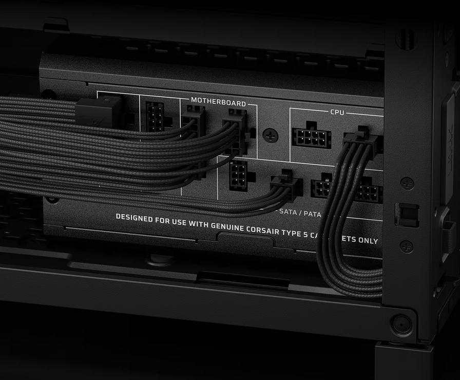 ![]() | Easy access Side-mounted connections The fully-modular connections have all been shifted to the side of the PSU, allowing for easy access and simplifying hardware upgrades and cable management. Includes a debossed PVC cable kit with smaller Type-5 connectors for easy cable routing and a premium look. |