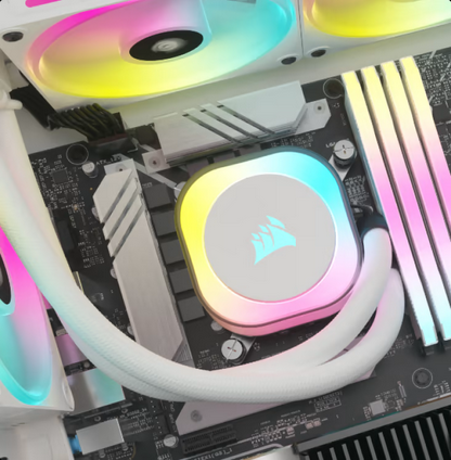 Keep noise down Enjoy ultra-quiet performance under any conditions with auto-adjusting pump speeds, precisely controlled by iCUE software. | Your setup at your command Adjust fan and pump speeds, control and synchronize RGB lighting, and monitor CPU and coolant temperatures in iCUE. |