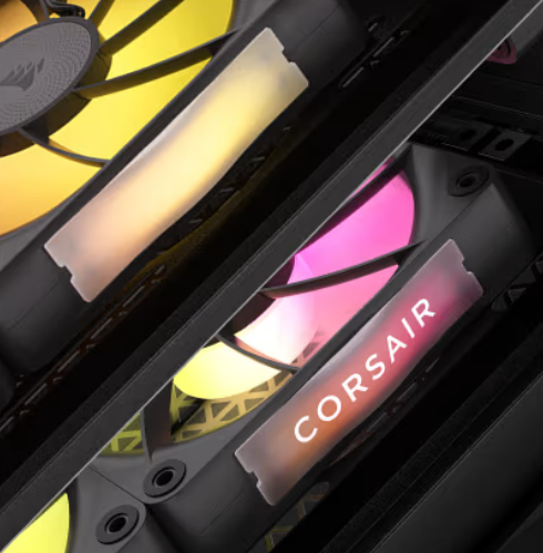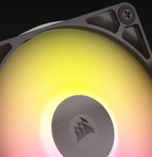 Detachable side plates Each RX RGB fan comes with a pair of decorative side plates, providing a choice between a translucent window or a CORSAIR wordmark. | ![]() |