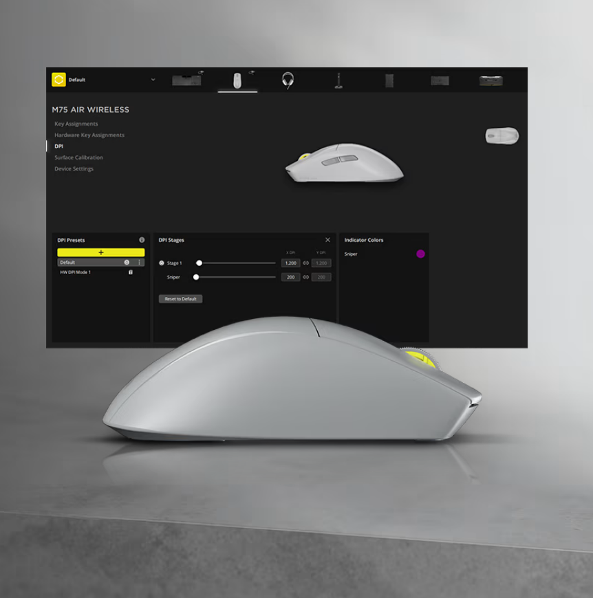 Make the path to victory easy. From defining your DPI presets to optimizing your wireless settings, powerful CORSAIR iCUE software enables you to fine-tune the M75 AIR WIRELESS to your exact specifications and put superior control at your fingertips.