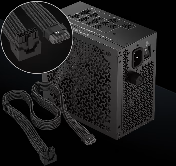 FULLY MODULAR TYPE-5 CONNECTORS CORSAIR Type-5 PSU cables take up less space, which combines with the modular design to allow for easier cable management. | ![]() |