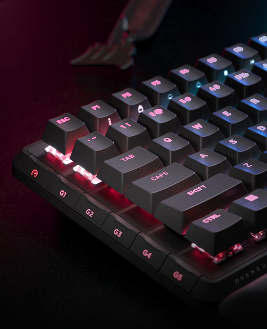96% Form factor This is a full keyboard with arrow keys, a tenkey pad, brilliant LCD screen, 6 programmable G-keys, and a rotary dial. It's also super-compact, comparable in size to a TKL keyboard, which gives players more room to make big plays. | ![]() |