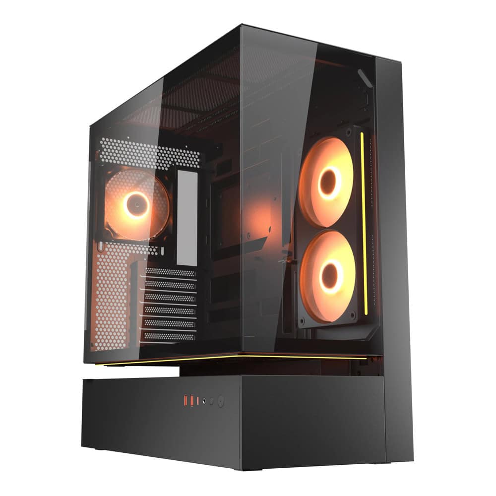 Conventional design squeezes both the PSU - a prime source of heat - and critical components in the same space, restricting airflow access to only the top, front and rear panels. The Central Floating Ventilation divides the PSU cabin and main chamber with a structural hollow that lets air move with greater freedom and purpose. This free-floating architectural separation also gives the CFV235 series its unique, progressive visual identity.