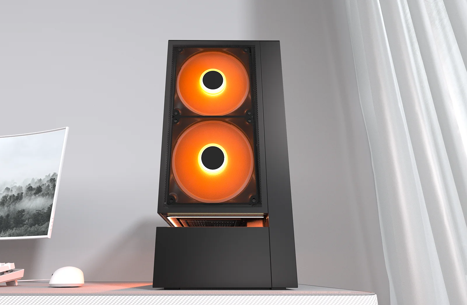 Conventional design squeezes both the PSU - a prime source of heat - and critical components in the same space, restricting airflow access to only the top, front and rear panels. The Central Floating Ventilation divides the PSU cabin and main chamber with a structural hollow that lets air move with greater freedom and purpose. This free-floating architectural separation also gives the CFV235 series its unique, progressive visual identity.