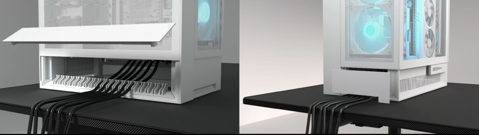 The ultimate zero-visibility cable management solution: all cabling is routed through the integrated base compartment, frontloading an ultra-clean interior from the start at setup.