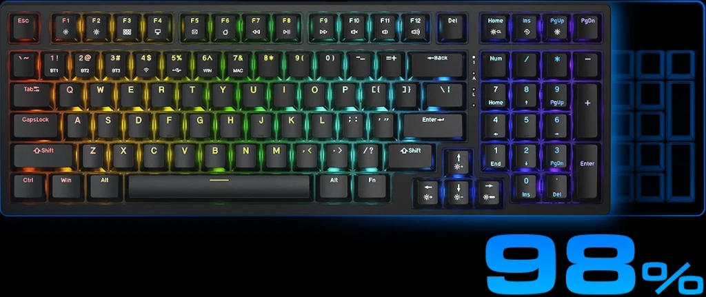 The 98% key layout frees up more functional space while delivering full functionality.