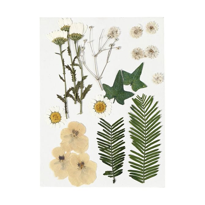 Creativ Company Цветя и листа, пресовани, бели, 19 броя