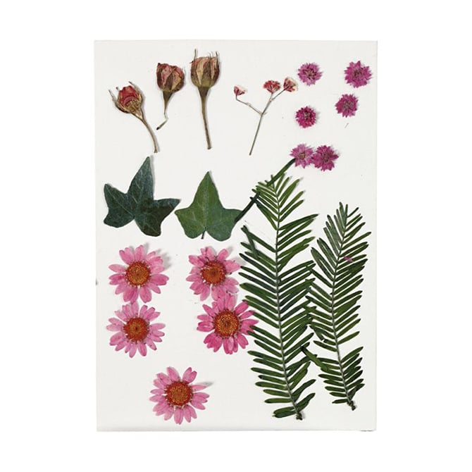 • Истински пресовани и изсушени цветя и листа за декорация на картички, кутии и други подобни.