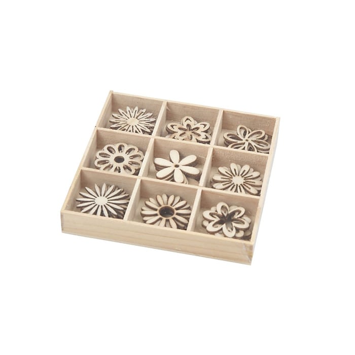 Creativ Company Дървени цветя за декорация, 9 вида по 5 броя