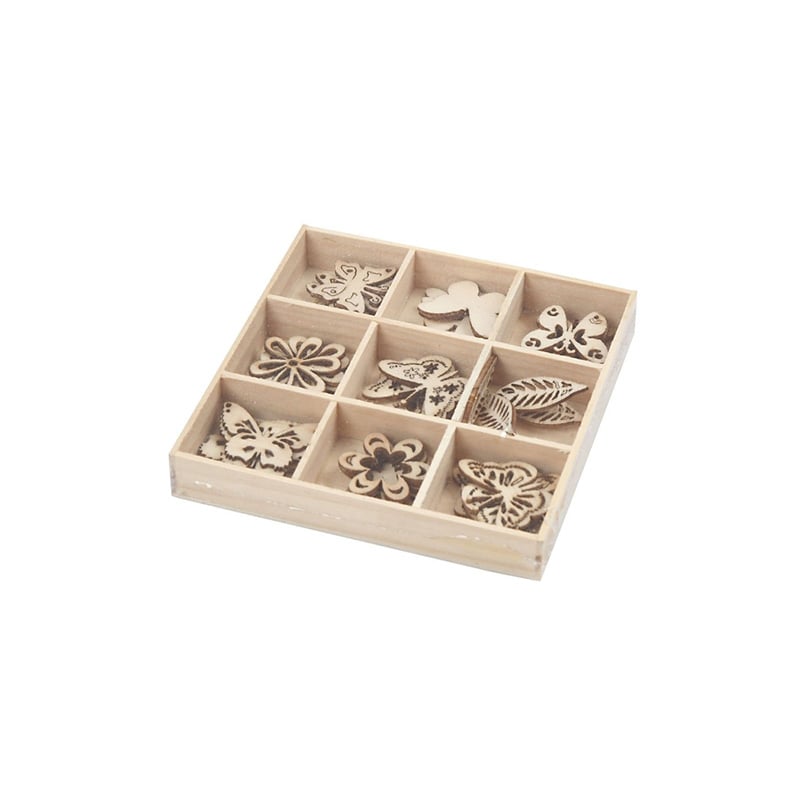 Creativ Company Дървени пеперуди за декорация, 9 вида по 5 броя