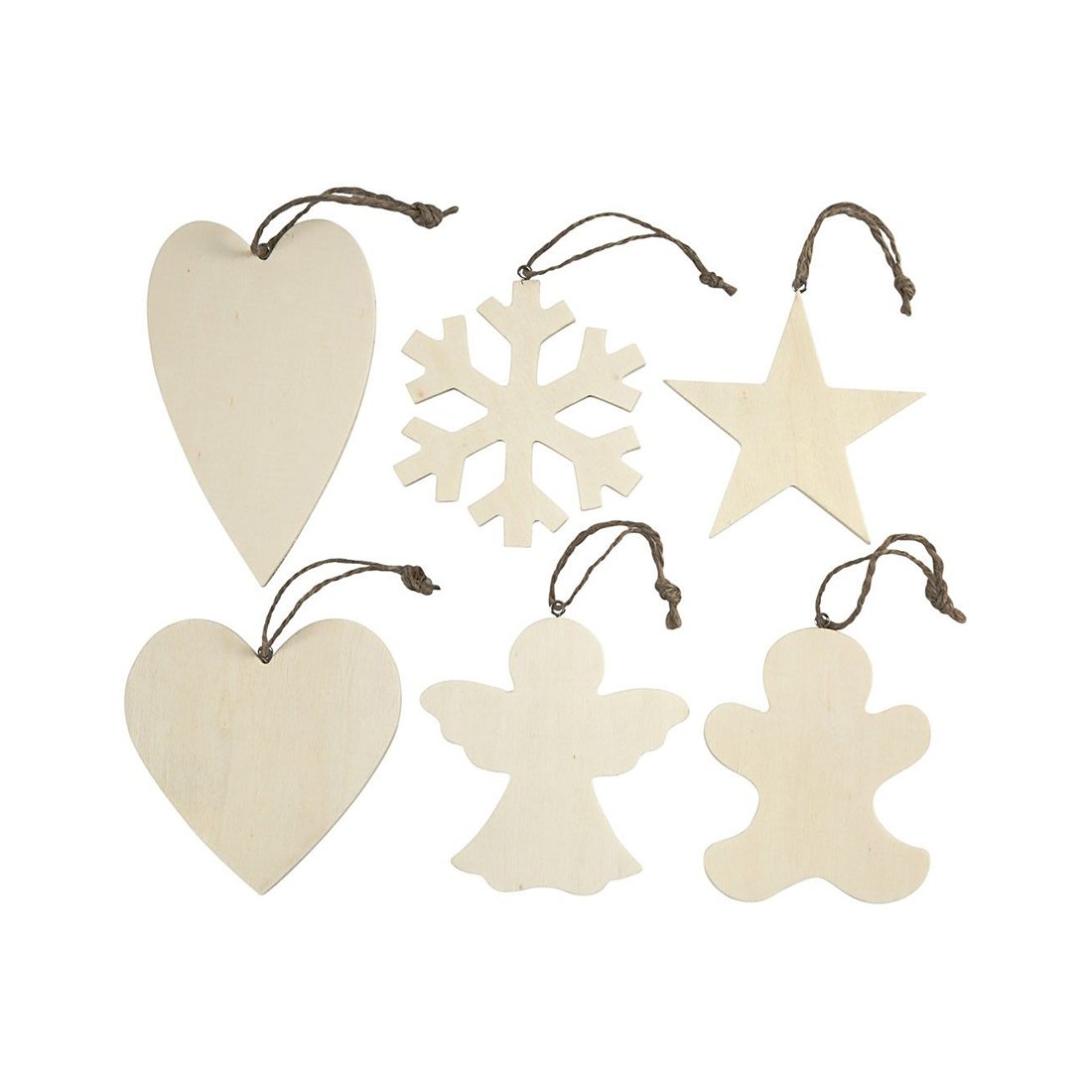 Комплектът включва орнаменти за декорация, изработени от светло дърво в 6 различни дизайна.