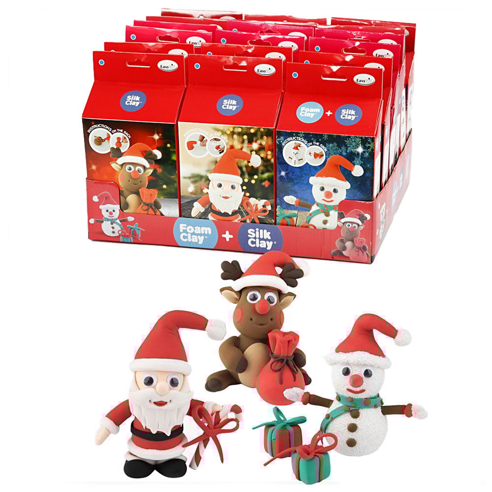 Комплектът съдържа с всички материали, необходими за направата на забавни коледни фигурки, използвайки Silk Clay® и Foam Clay®.