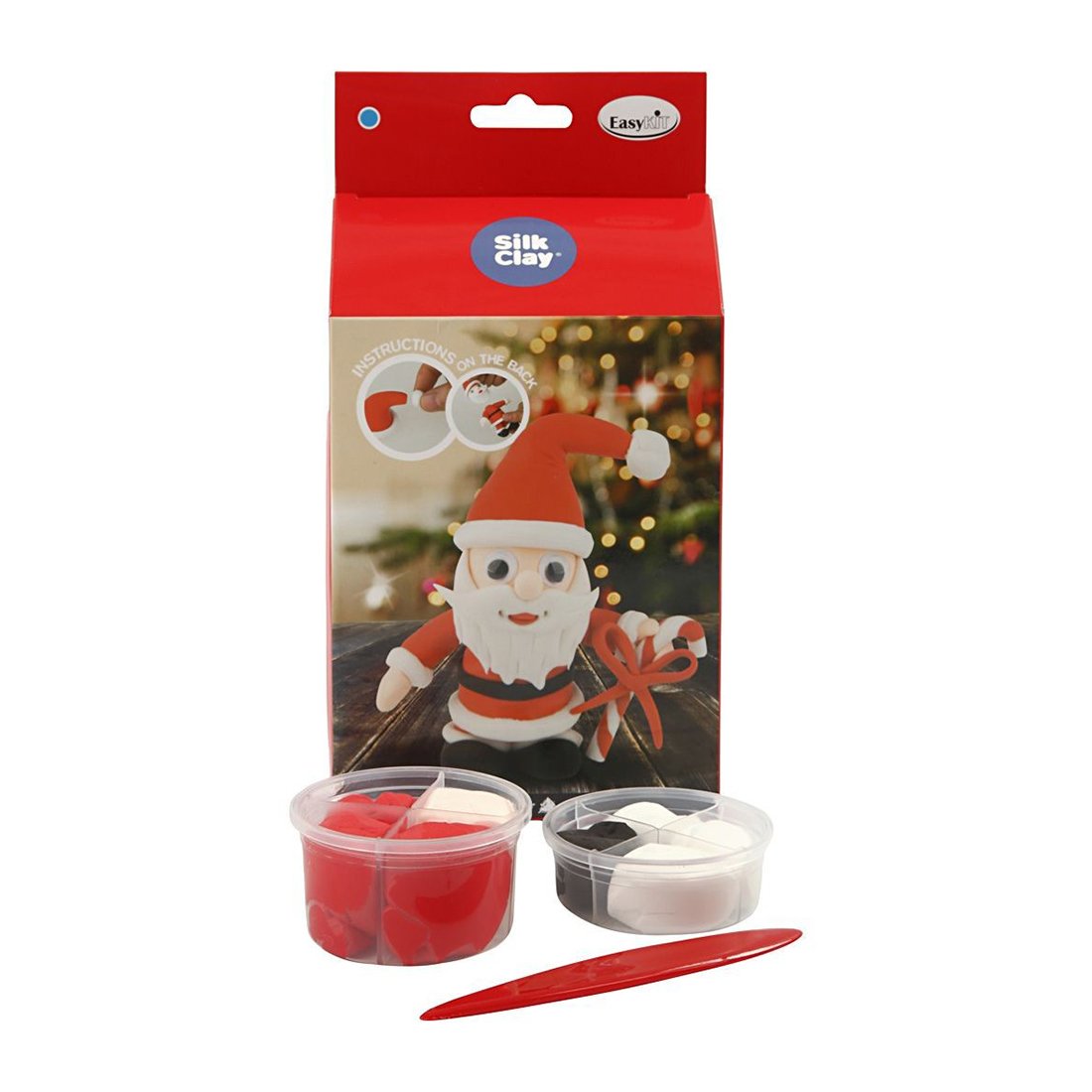 Комплектът включва всички материали, необходими за направата на забавна фигура на дядо Коледа с помощта на Silk Clay®.
