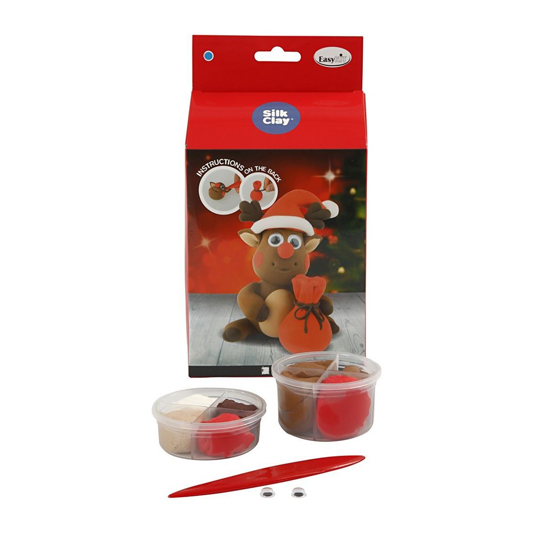 Комплектът включва всички материали, необходими за направата на забавна фигура елен с помощта на Silk Clay®.