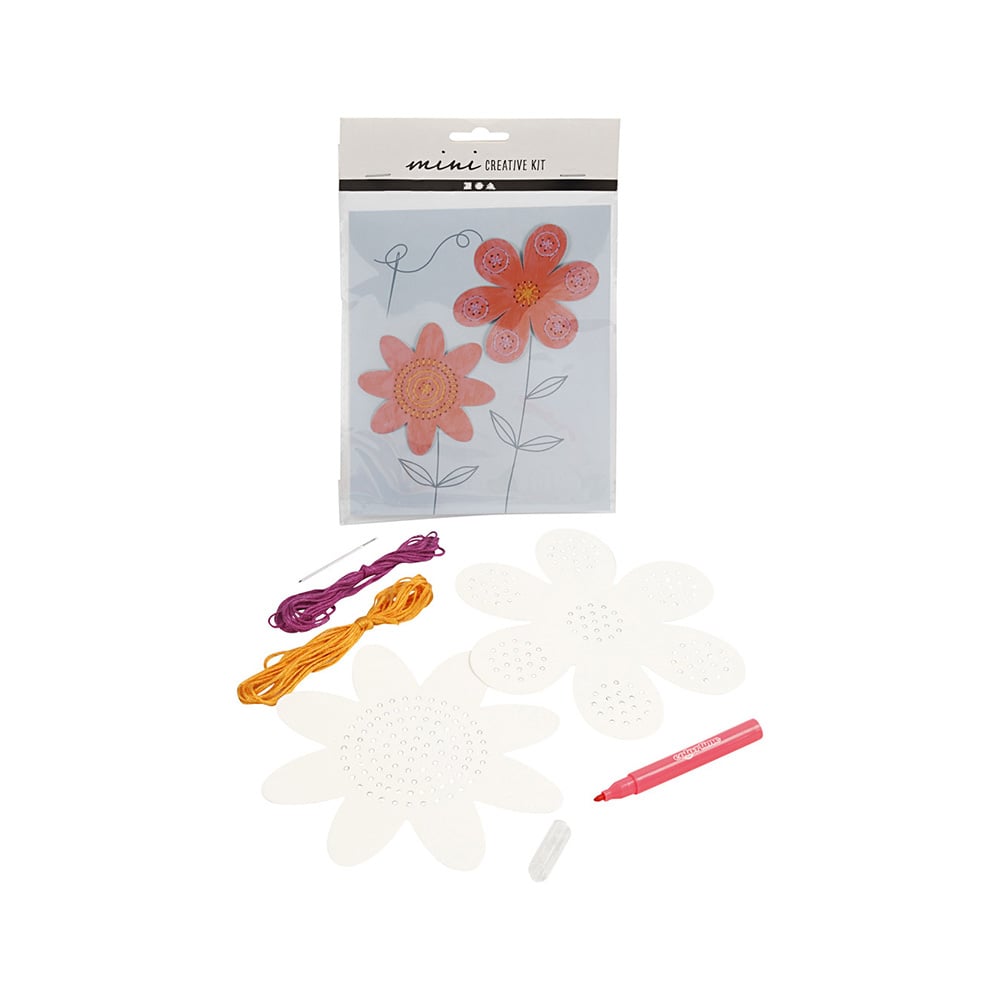 • Съдържание: 2 различни цветя, 1 мини маркер, 2 цвята прежда за бродиране и игла.
