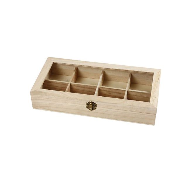 Дървена кутия със стъклен капак и метално затваряне – 8 отделни отделения.