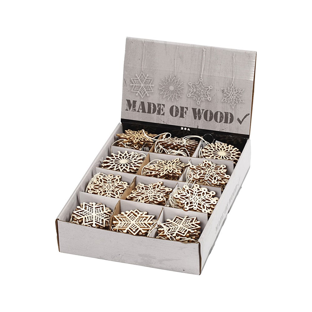 Creativ Company Снежинки за декорация, за окачване, дървени, 200 броя
