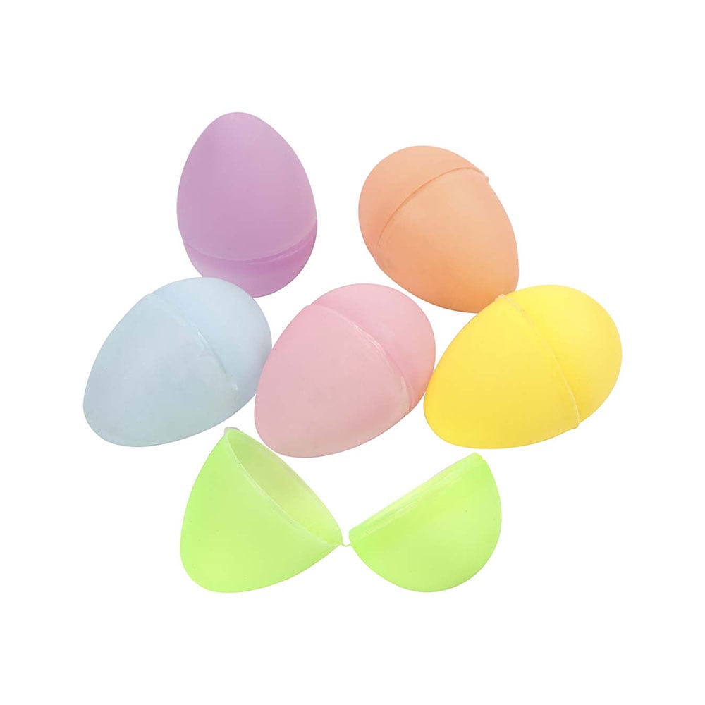 Комплект от пластмасови яйца в нежни пастелни цветове, за декорация. Всяко яйце е от две части.