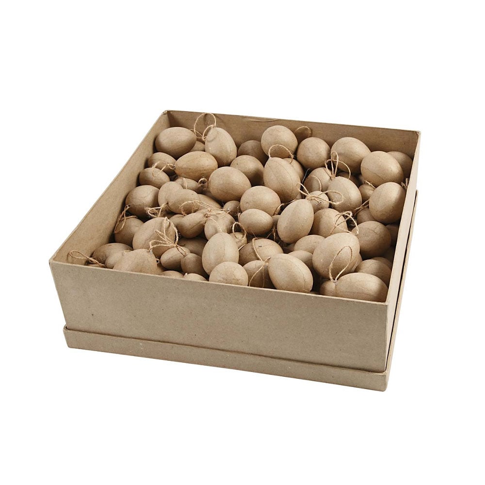 Ръчно изработени яйца от папиемаше със сърцевина от пластмаса, която осигурява стабилност и връв за окачване.