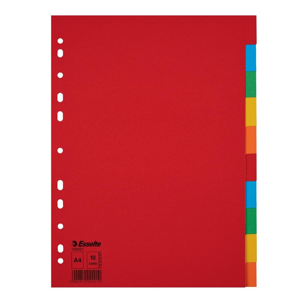 Цветен разделител Esselte, 10 теми, картон 160 г, A4, подсилена европерфорация, лицева страница