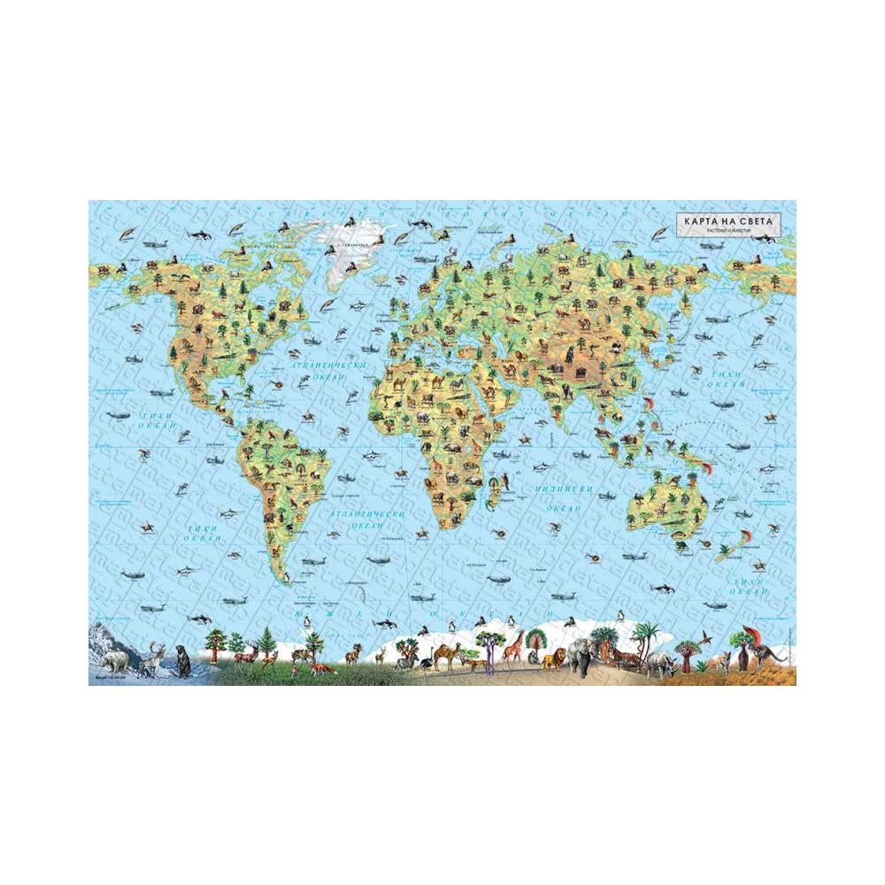 DataMap Стенна карта на растения и животни в България и света, двустранна, 100 x 70 cm