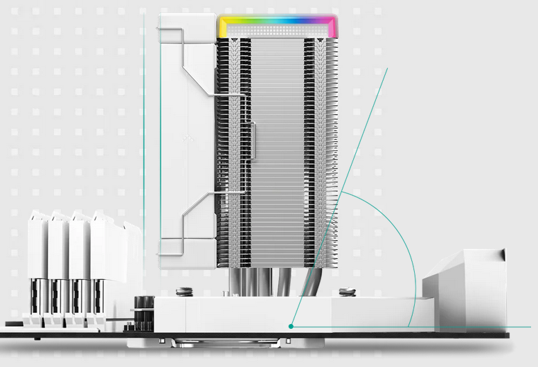 ![]() | PREMIUM COMPATIBILITY Designed with offset heat pipes to accommodate the larger heat sink depth for better component compatibility. This allows more space for tall heat spreaders and an unobstructed view of all your RAM slots. |