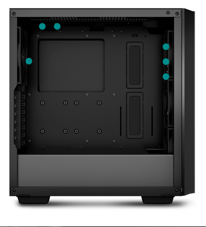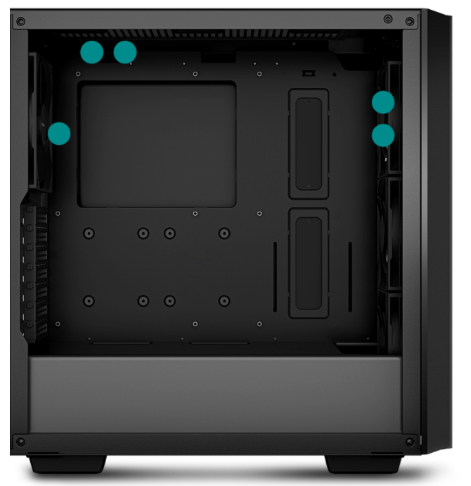 Front: 3 x 120 / 2 x 140 mm Top: 2 x 120 / 2 x 140 mm Rear: 1 x 120 / 1 x 140 mm |