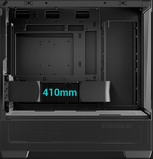 Wide hardware support Built to handle serious hardware, it supports GPUs up to 410mm, ATX PSUs up to 250mm, and CPU coolers up to 176mm tall, offering broad compatibility for high-performance components. A 33mm routing space behind the motherboard tray keeps everything neatly organized. | ![]() |