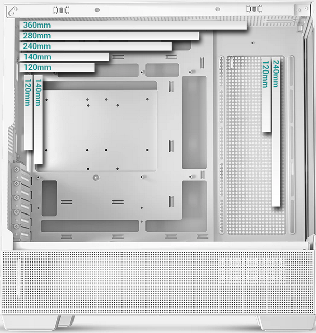 | Radiator Support | Front: NA Top: 120/140/240/280/360mm Side: 120/240mm Rear: 120/140mm |