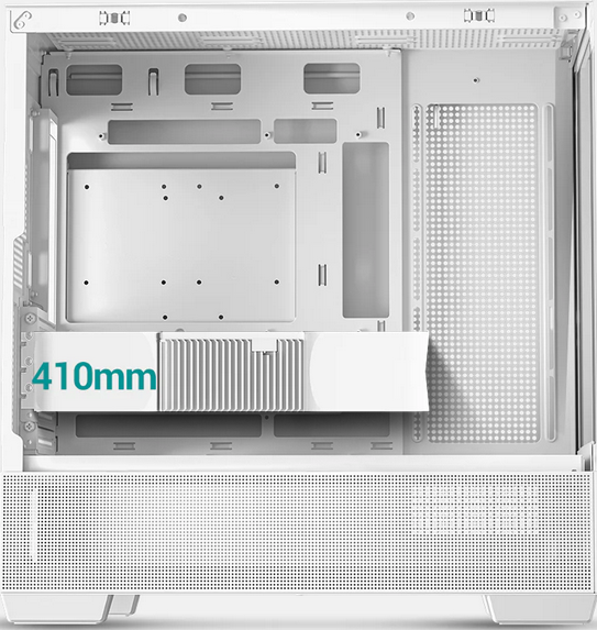 Wide hardware support Built to handle serious hardware, it supports GPUs up to 410mm, ATX PSUs up to 250mm, and CPU coolers up to 176mm tall, offering broad compatibility for high-performance components. A 33mm routing space behind the motherboard tray keeps everything neatly organized. | ![]() |
