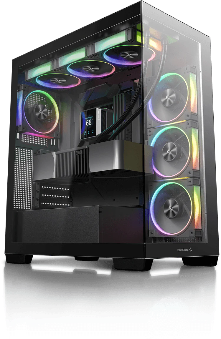 The CG580 4F V2 stands out with a pre-installed cooling setup, featuring three PWM ARGB reverse flow fans on the side and one standard PWM ARGB fan at the rear. This configuration creates a streamlined airflow path that enhances thermal efficiency. Coordinated ARGB lighting across the fan frames and rings supports motherboard sync for a unified and dynamic visual effect.
