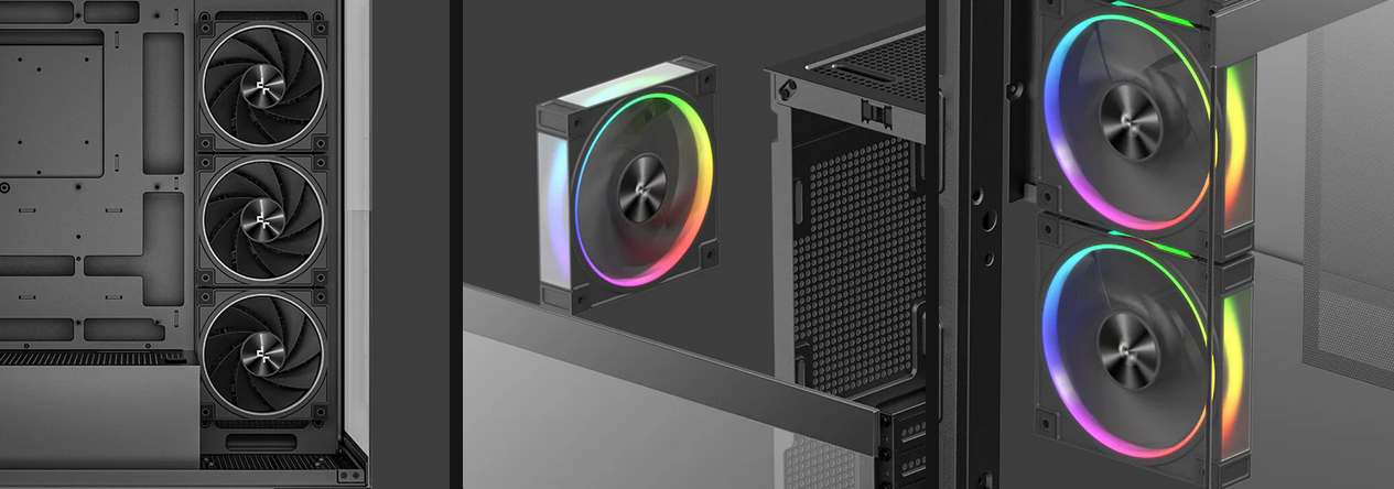 Pre-Installed Fans | Side:3×120mm(PWM+ARGB Reverse Blade) Rear: 1×120mm(PWM+ARGB) |