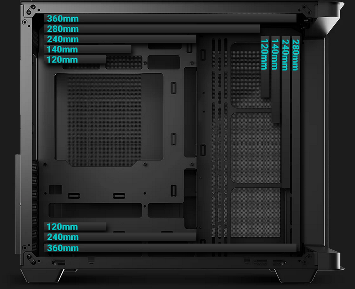 | Radiator Support | Front: NA Top: 120/140/240/280/360mm Side: 120/140/240/280mm Bottom: 120/240/360mm |