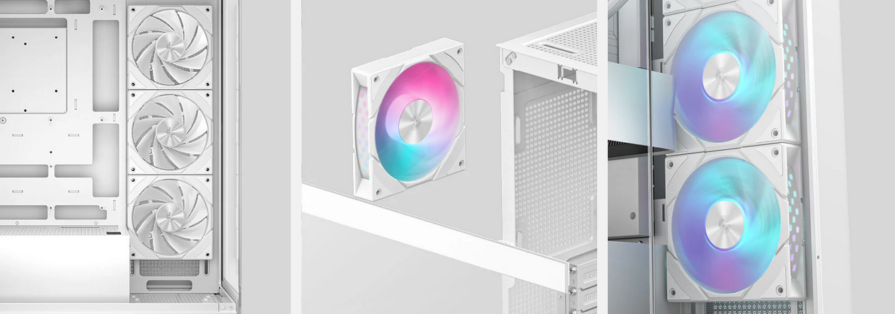 | Pre-Installed Fans | Side:3×120mm(PWM+ARGB Reverse Blade) Rear: 1×120mm(PWM+ARGB) |