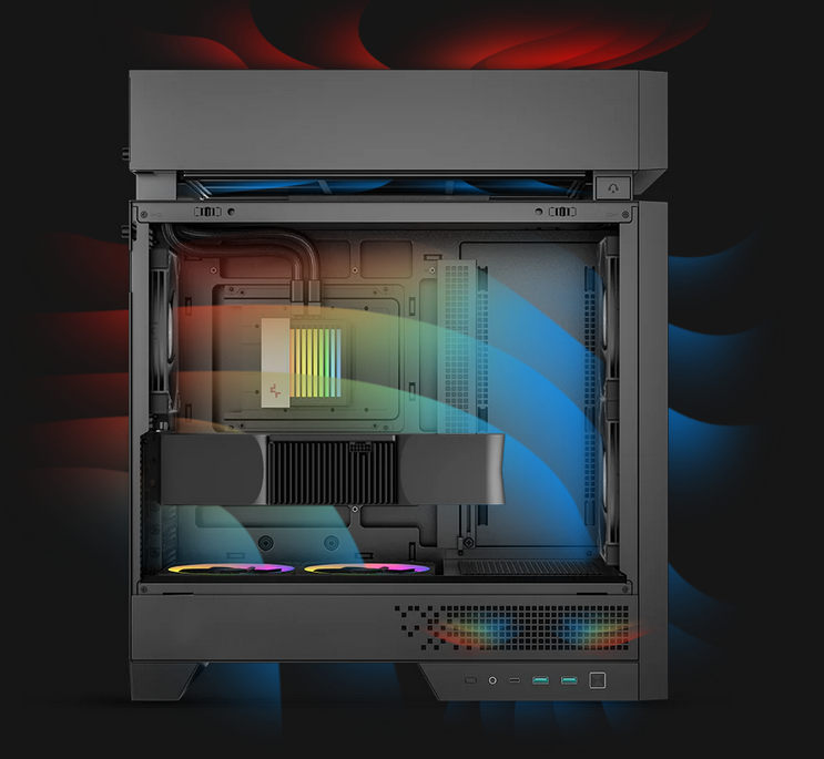 ![]() | Split for perfect flow CL6600 keeps things cooler with a modular split-chamber layout. It places the radiator in its own zone, creating separate airflow paths for heat-generating components and letting the whole system run at its best. |
