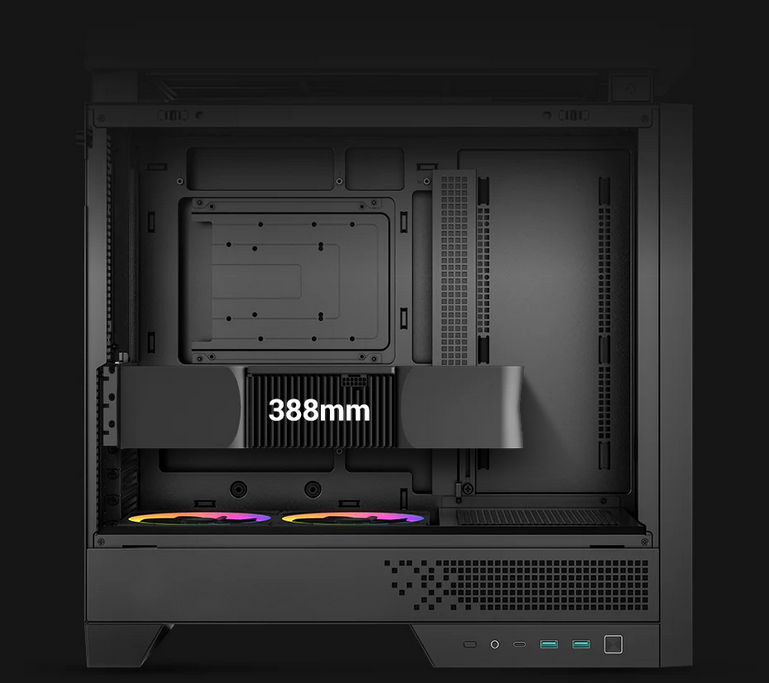 CL6600 gives high-end builds plenty of room, fitting GPUs up to 388mm, tall air coolers to 175mm, and standard ATX PSUs up to 160mm. Back-connect motherboard support and 7 expansion slots make future upgrades simple.