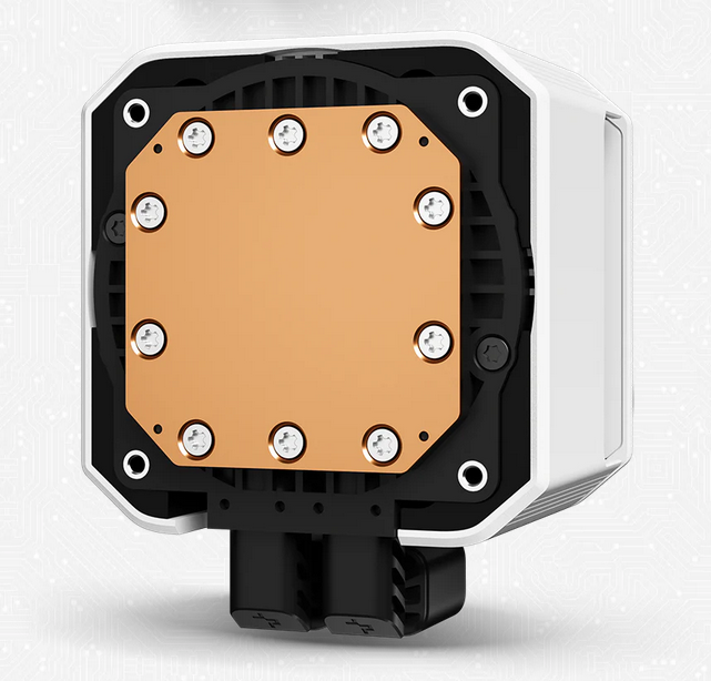 ![]() | REDESIGNED AND IMPROVED COLDPLATE The MYSTIQUE 360 WH ARGB gets a redesigned coldplate that has been optimized for better heat transfer and 0.1mm intensive flow channels. The layout has been placed over CPU hotspots, and a precise liquid splitter makes sure that everything is flowing efficiently. |