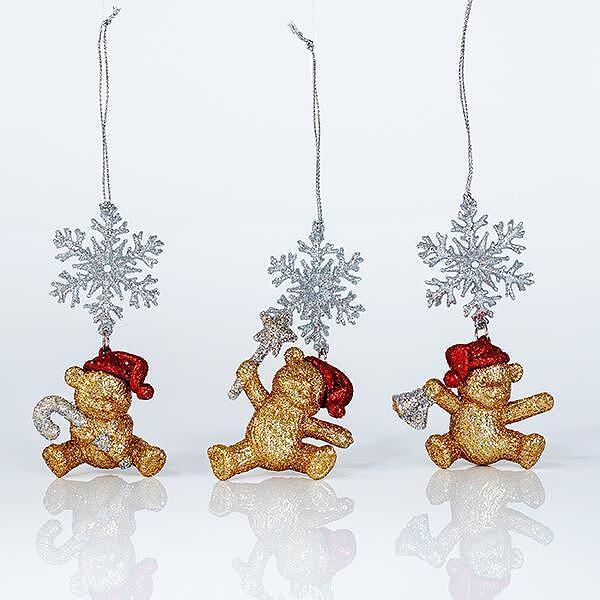 Тези очарователни мечета в златен цвят, покрити с брокат, ще добавят забавление и блясък към празничната ви елха.