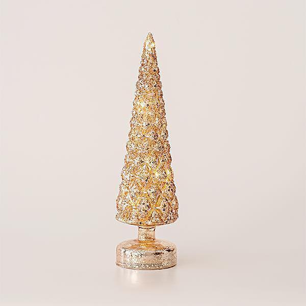 Декоративна стъклена елха, цвят шампанско с брокат, с батерии, размери 9 x 34 см – елегантен и блестящ акцент за вашата празнична украса!