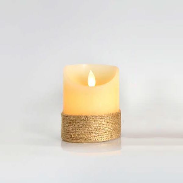 Тази LED свещ съчетава реалистичен движещ се пламък и рустикален дизайн с канап, създавайки топла и уютна атмосфера.