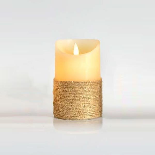 Тази LED свещ комбинира натуралния чар на канап с иновативен движещ се пламък, който имитира мекото сияние на истинска свещ, но без риска от открит пламък.