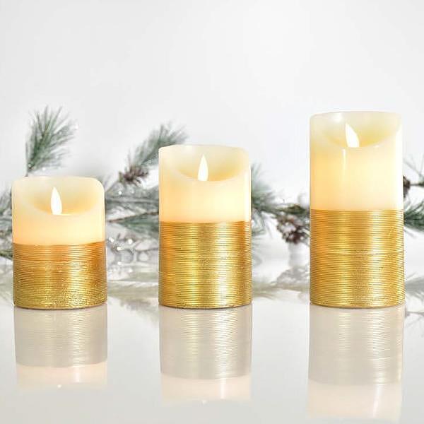 Добавете лукс и уют към вашето пространство с тази декоративна LED свещ със златен акцент и движещ се пламък!